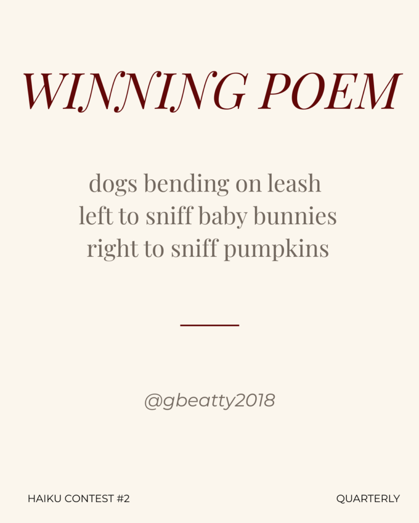 The POWTRY Series is a quarterly haiku contest aiming to foster creativity and love for the haiku form. “Powtry” is not a typo, but a conglomeration of the word “poetry” and “pow-wow.” The POWTRY Series is meant to inspire poems that deliver a sense of “pow-wow.”